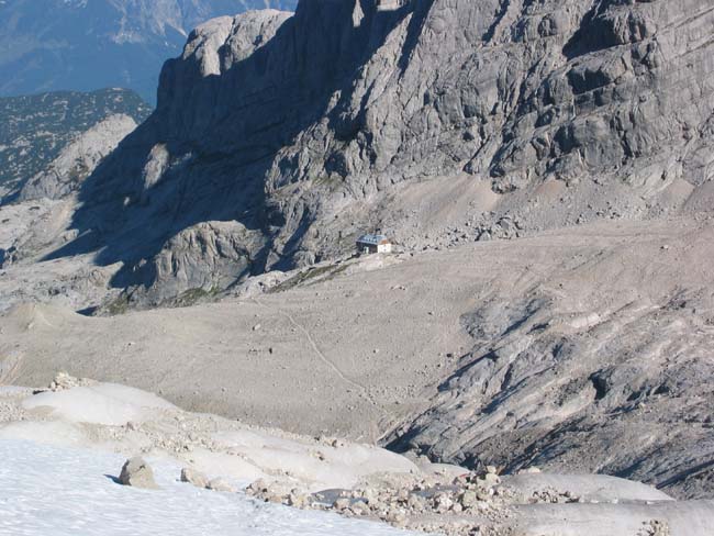 The Adamek hut from the Gosau glacier.