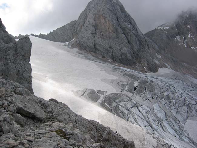 The Gosau glacier with crevasses from the Steinerscharte.