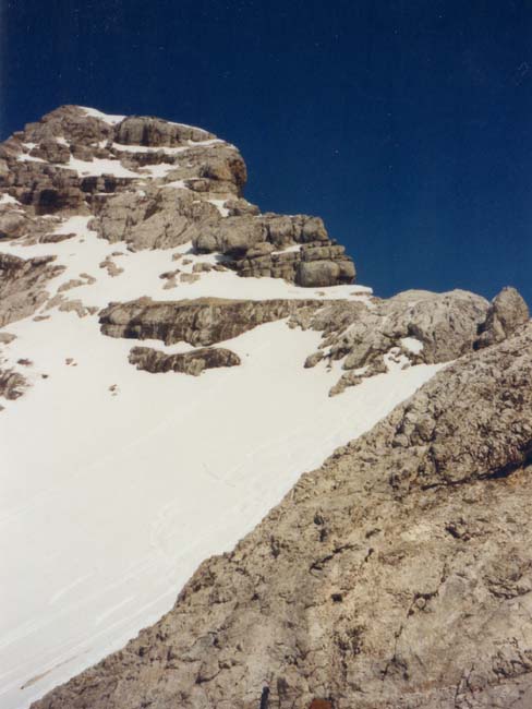 The top pyramid of Hoher Dachstein. We found the saddle Windlucke very easily this year.