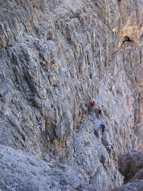 Climbing of Tofana di Rozes - a via ferrata.