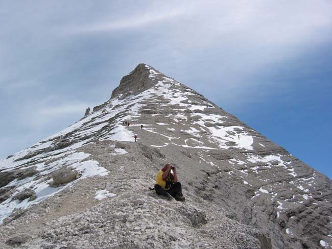 Final approach of Tofana di Rozes via the normal route above the upper end of the via ferrata.