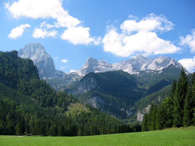 Spitzmauer (2,446 m) and Grosser Priel (2,515 m) from meadows near Hinterstoder.
